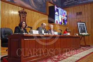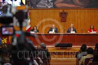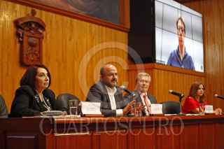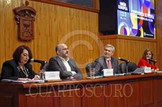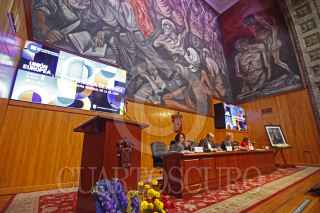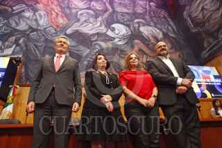 GUADALAJARA, JALISCO, 03OCTUBRE2023.- Esta mañana autoridades del Comité Organizador de la Feria Internacional del Libro de Guadalajara así como de la Universidad de Guadalajara, encabezaron la conferencia de prensa en la que se dio a conocer el Programa general de actividades 2023, esto en las instalaciones del Paraninfo Enrique Díaz de León de la Universidad de Guadalajara. En la imagen Marisol Schultz Manaut, Directora General de la FIL, Ricardo Villanueva Lomelí, Rector de la U.de G., Excmo. Gautier Mignot, Embajador de la Unión Europea en México y Dra. Karla Alejandrina Planter Pérez, Rectora del CU Valles. FOTO: FERNANDO CARRANZA GARCIA / CUARTOSCURO.COM
