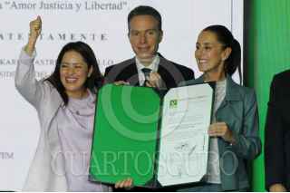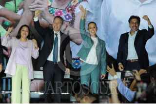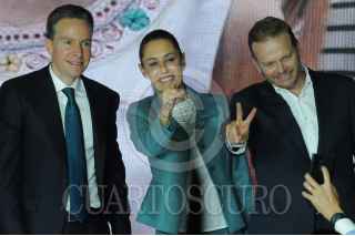 CIUDAD DE MÉXICO, 03OCTUBRE2023. - Esta mañana Claudia Sheinbaum anunció que le fue brindada una escolta por parte de la Sedena, la cual aseguro "que será algo sencillo y que no le impida estar cerca de la gente". En la imagen, dos integrantes de su cuerpo de seguridad le abren camino para poder salir de un evento donde participó este día. FOTO: DANIEL AUGUSTO /CUARTOSCURO.COM