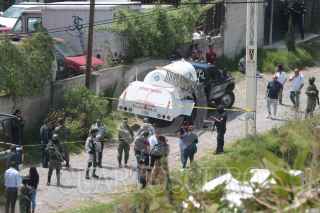 NAUCALPAN, ESTADO MÉXICO, 03OCTUBRE2023.- Tras una bronca entre integrantes de rutas de gaseros fueron asesinados tres trabajadores . Los hechos en la carretera Naucalpan-Toluca, kilómetro 11, colonia Ejido del Castillo. Los cuerpos quedaron en un predio donde se encontraba estacionada una pipa de gas LP. FOTO: ROGELIO MORALES/CUARTOSCURO.COM