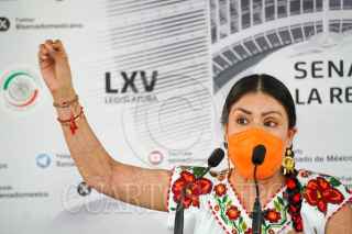 CIUDAD DE MÉXICO, 04OCTUBRE2023.- La saxofonista oaxaqueña Elena Ríos, sobreviviente a un intento de feminicidio mediante un ataque perpetrado con ácido presuntamente por su expareja el ex diputado local Juan Antonio Vera Carrizal, asistió al Senado para denunciar a la jueza que esta llevando el caso tiene conflicto de intereses ya tiene una relación cercana con integrantes de la defensa de sus agresor. La Jueza en cuestión es María Teresa Quevedo Sánchez fue grabada en video durante una fiesta con los abogados de Vera Carrizal. FOTO: ELIZABETH RUIZ/CUARTOSCURO.COM
