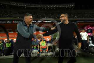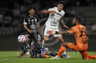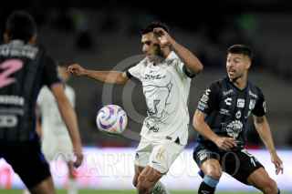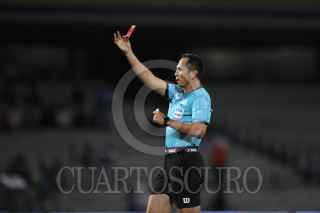 CIUDAD DE MÉXICO, 04AGOSTO2023. El Árbitro Central Luis Enrique Santander observa una jugada entre Santiago Trigos de Pumas y Pablo Barrera de Gallos Blancos durante el partido de fútbol Pumas vs Querétaro correspondiente a la jornada 11 del Torneo Apertura 2023 de Liga BBVA MX, en el Estadio Olímpico Universitario. FOTO: EDGAR NEGRETE/CUARTOSCURO.COM