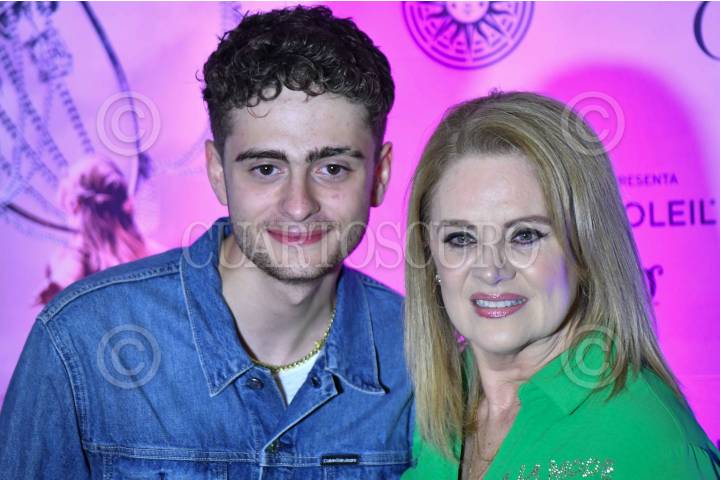 CIUDAD DE MÉXICO, 04OCTUBRE2022.- Erika Buenfil, y su hijo Nicolás de Jesús Buenfil, durante la alfombra roja del estreno de la nueva temporada de Circo du Soleil Corteo, en el Palacio de los Deportes. FOTO: MARIO JASSO/CUARTOSCURO.COM