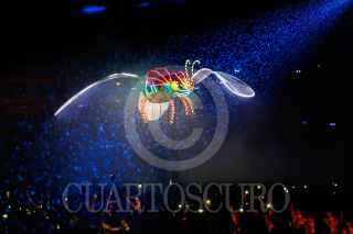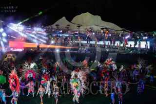 TLAXCALA, TLAXCALA, 05OCTUBRE2023. Con la presencia de Lorena Cuéllar Cisneros, gobernadora de Tlaxcala, y Ana Gabriela Guevara, directora de la CONADE, se llevó a cabo la inauguración del Campeonato Mundial de Voleibol de Playa 2023. Con una ceremonia de luces, sonido y danza se dio la bienvenida a las y los participantes de más de 30 países, en el Estadio Tlahuicole. FOTO: ESSENE HERNÁNDEZ/CUARTOSCURO.COM