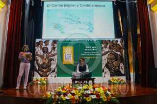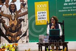 PUERTO DE VERACRUZ, 06OCTUBRE2023.- Conferencia Magistral de la Dra. Margarita Aurora Vargas Canales, quien cuenta con un amplio conocimiento de migración principalmente Haitiana, esto dentro de las actividades del Festival Afrocaribeño que se realiza en este puerto. FOTO: VICTORIA VALTIERRA/CUARTOSCURO.COM