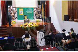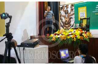 PUERTO DE VERACRUZ, 07OCTUBRE2023.- El Doctor Alfredo Delgado, en su conferencia magistral sobre la participación y disputas entre Afrodescendientes e indígenas en zonas del México antes de la independencia. FOTO: VICTORIA VALTIERRA/CUARTOSCURO.COM