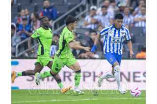 GUADALUPE, NUEVO LEÓN, 07OCTUBRE2023.- Jesús Corona del Monterrey se disputa el balón con Andrija Vukcevic de FC Juárez, en el estadio BBVA, partido correspondiente a la jornada 12 de la Apertura 2023. Marcador Final: Monterrey 3 - FC Juárez 1. FOTO: GABRIELA PÉREZ MONTIEL / CUARTOSCURO.COM
