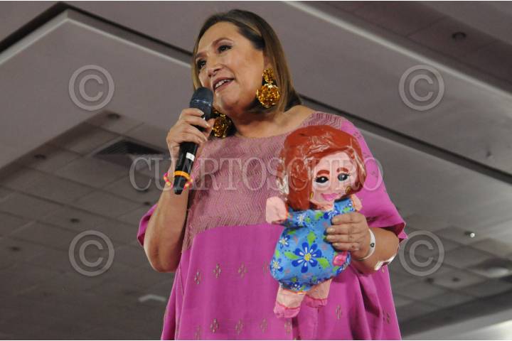 CIUDAD DE MÉXICO, 08OCTUBRE2023. - Xóchitl Gálvez, responsable del Frente Amplio por México para buscar la presidencia de la República, recibe una muñeca de alguno de sus seguidores. FOTO: DANIEL AUGUSTO /CUARTOSCURO.COM