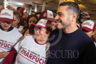 CIUDAD DE MÉXICO, 08OCTUBRE2023.- Omar García Harfuch continúa con sus reuniones con vecinos para encabezar la Coordinación de la Defensa de la Cuarta Transformación en la Ciudad de México, o en otras palabras la candidatura de Morena para ser Jefe de Gobierno, en esta ocasión sostuvo un encuentro con simpatizantes de la alcaldía Cuauhtémoc en el Centro de Convenciones Tlatelolco. Estuvo acompañado de los morenista Dolores Padierna y Roberto López. FOTO: MOISÉS PABLO/CUARTOSCURO.COM