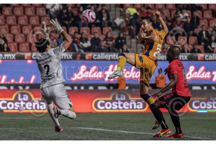 TIJUANA, BAJA CALIFORNIA, 08OCTUBRE2023.- Unai Bilbao dispara y falla una jugada clara en el partido correspondiente a la jornada 12 del Torneo Apertura Temporada 2023-2024 de la Liga MX, en donde se enfrentaron los equipos de Xoloitzcuintles de Tijuana vs Atletico San Luis en el Estadio Caliente, el marcador final fue de 2-1 a favor del equipo local. FOTO: OMAR MARTÍNEZ / CUARTOSCURO.COM