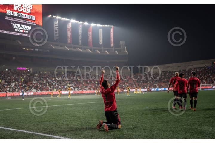 TIJUANA, BAJA CALIFORNIA, 08OCTUBRE2023.- Silvio Alejandro Martínez festeja el gol anotado en el partido correspondiente a la jornada 12 del Torneo Apertura Temporada 2023-2024 de la Liga MX, en donde se enfrentaron los equipos de Xoloitzcuintles de Tijuana vs Atletico San Luis en el Estadio Caliente, el marcador final fue de 2-1 a favor del equipo local. FOTO: OMAR MARTÍNEZ / CUARTOSCURO.COM