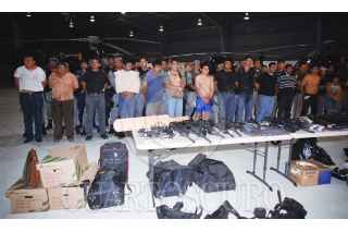 México D.F., a 18 de Mayo de 2007. (ARCHIVO) De acuerdo con indagatorias sustentadas por la Subprocuraduría de Investigación Especializada en Delincuencia Organizada (SIEDO), los 18 inculpados fueron detenidos en abril, en tres cateos efectuados en Ciudad del Carmen, Campeche.En esas acciones también se aseguraron 38 armas de fuego; dos mil 175 cartuchos de diversos calibres; 113 cargadores para armas de uso exclusivo de las fuerzas armadas; 40 chalecos tácticos; una granada de mano y 30 insignias de la Agencia Federal de Investigación (AFI).Los procesados se encuentran internos en el Centro Federal de Readaptación Social número 1 "El Altiplano", en Almoloya de Juárez, estado de México. FOTO: Especial/CUARTOSCURO.COM