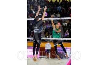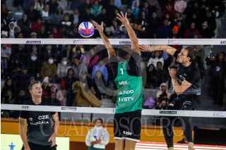 TLAXCALA, TLAXCALA, 09OCTUBRE2023. La Dupla Mexicana Galindo y Aguirre se enfrentaron contra Republica Checa en los juegos del Campeonato Mundial de Voleibol de Playa, celebrado en la Plaza de Toros Apizaco. FOTO: ESSENE HERNÁNDEZ/CUARTOSCURO.COM