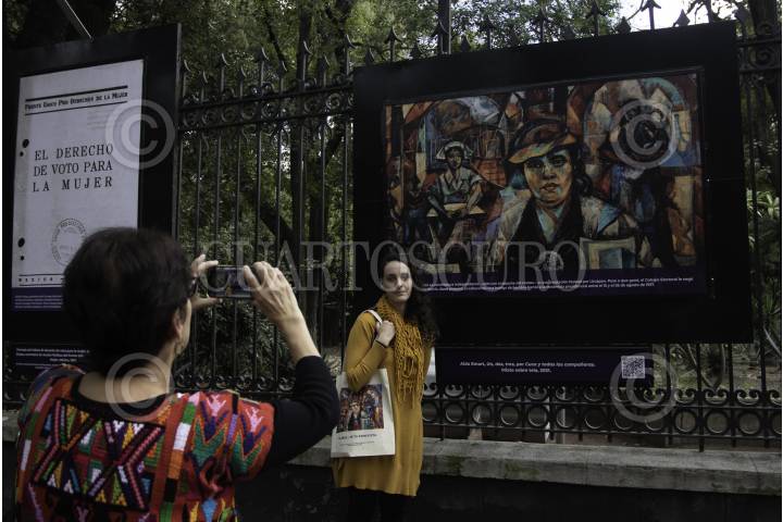 CIUDAD DE MÉXICO, 09OCTUBRE2023.- Nadine Gasman, titular Instituto Nacional de las Mujeres (Inmujeres); Ingrid Gómez Saracíbar, Secretaria de las Mujeres de la Ciudad durante la inauguración de la exposición fotográfica en el corredor cultural del bosque de Chapultepec, con motivo del 70 aniversario del voto de la mujer en México. FOTO: ANDREA MURCIA /CUARTOSCURO.COM