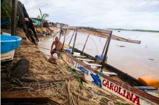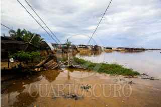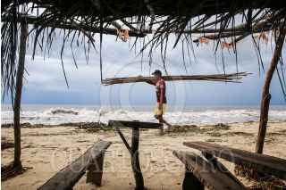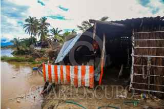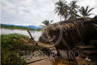COYUCA DE BENITEZ, GUERRERO,10OCTUBRE2023 .- La tormenta tropical Max destruyó decenas de ramadas que funcionaban como restaurantes en el poblado turístico de La Barra de Coyuca, ubicado a media hora de Acapulco, pobladores del lugar mencionaron qué durante la noche de ayer los fuertes vientos destruyeron las ramadas construidas con palma de coco, a si como la intensa lluvia hizo que el caudal del río inundara algunas zonas del lugar. FOTO: CARLOS CARBAJAL/CUARTOSCURO.COM