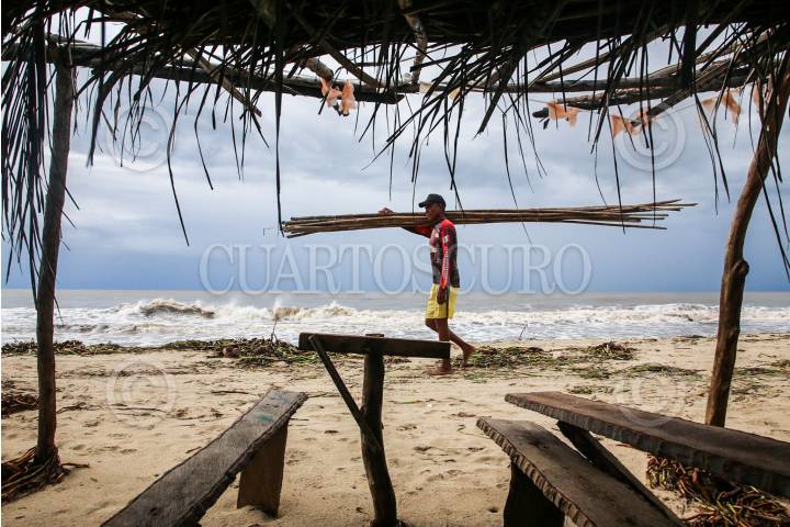 COYUCA DE BENITEZ, GUERRERO,10OCTUBRE2023 .- La tormenta tropical Max destruyó decenas de ramadas que funcionaban como restaurantes en el poblado turístico de La Barra de Coyuca, ubicado a media hora de Acapulco, pobladores del lugar mencionaron qué durante la noche de ayer los fuertes vientos destruyeron las ramadas construidas con palma de coco, a si como la intensa lluvia hizo que el caudal del río inundara algunas zonas del lugar. FOTO: CARLOS CARBAJAL/CUARTOSCURO.COM5