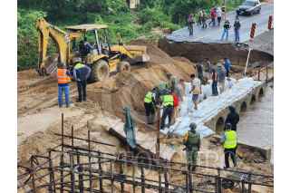 TECPAN DE GALEANA, GUERRERO, 10OCTUBRE2023.- Elementos del Ejército Mexicano trabajan en la limpieza y reconstrucción del socavón formado en la carretera Acapulco-Zihuatanejo tras el paso de la tormenta tropical “Max”. Asimismo, se asiste en las comunidades afectadas del municipio de Petatlán, Guerrero. FOTO: SEDENA/CUARTOSCURO.COM