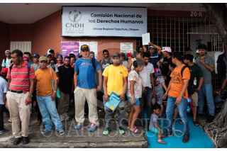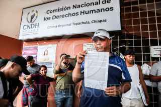 TAPACHULA, CHIAPAS, 10OCTUBRE2023.- El activista Irineo Mujica y migrantes acudieron a la Comisión Nacional de Derechos Humanos en Tapachula para pedir medidas cautelares de protección a las caravanas de migrantes que parte de esta ciudad rumbo los Estados Unidos. FOTO: DAMIÁN SÁNCHEZ/CUARTOSCURO.COM