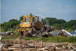 MEDELLIN DE BRAVO, VERACRUZ, 11 OCTUBRE 2023.- Esta mañana elementos de la Secretaría de Seguridad Pública realizaron un gran operativo donde desalojaron y demolieron las casas de más de 20 familias que ocuparon terrenos de forma irregular en el fraccionamiento Puente Moreno, desde Marzo de este año. Al sitio llegaron más de 50 elementos a realizar diligencias, mientras que los vecinos retiraban las pertenencias rescatables de la demolición y fueron despojados de los materiales de construcción de su vivienda. FOTO: VICTORIA RAZO/CUARTOSCURO.COM