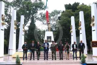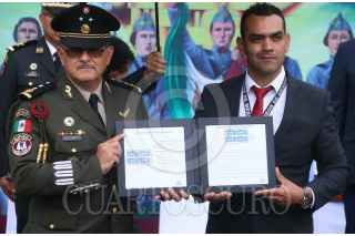 CUERNAVACA, MORELOS, 11OCTUBRE2023.- El general Antonio Ramírez Escobedo, comandante de la 24va Zona Militar acompañado del presidente del Congreso, Francisco Sánchez Zavala, encabezo la ceremonia por el "Bicentenario del Heroico Colegio Militar" y la cancelación del primer día de emisión de la estampilla alusiva al Monumento a los Niños Héroes. FOTO: MARGARITO PÉREZ RETANA / CUARTOSCURO.COM