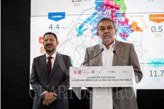 CIUDAD DE MÉXICO, 11OCTUBRE2023.- Martí Batres Guadarrama, jefe del Gobierno de la Ciudad, encabezo la presentación de la inversión destinada a nuevas Obras en el sistema de agua potable para la Ciudad Capital. Además señaló que señalar que hemos invertido alrededor de 4 mil 700 millones de pesos para el abastecimiento, recuperación y distribución de agua en la Ciudad de México. Rafael Carmona, director de SacMex, lo acompañó. FOTO: GOBIERNO DE LA CIUDAD/CUARTOSCURO.COM