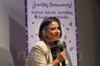 CIUDAD DE MÉXICO, 11OCTUBRE2023.- Olimpia Coral Melo, víctima de violencia de género digital y promotora de la la Ley Olimpia, participaron en el Foro Internacional 2024 "Políticas y Presupuesto para la Igualdad y la Erradicación de las Violencias", en el Museo Franz Mayer. FOTO: MOISÉS PABLO/CUARTOSCURO.COM