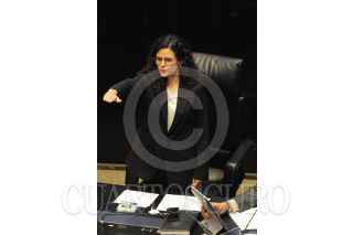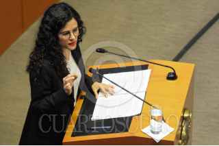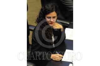 CIUDAD DE MÉXICO, 11OCTUBRE2023. - La senadora panista, Xóchitl Gálvez, corta sus uñas con unas tijeras durante la sesión de este miércoles. FOTO: DANIEL AUGUSTO /CUARTOSCURO.COM