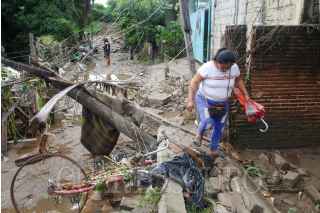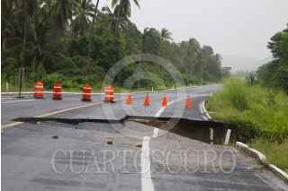 TECPAN DE GALEANA, GUERRERO, 110CTUBRE2023.- Las intensas lluvias de la tormenta tropical Max causaron el colapso de la carretera Acapulco-Zihuatanejo, en el municipio de Tecpan de Galeana de la región de Costa Grande, en dónde la tormenta causo diversos daños por el desbordamiento del río y que inundo varías casas en colonias de la cabecera del municipio. FOTO: CARLOS ALBERTO CARBAJAL/CUARTOSCURO.COM