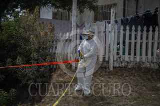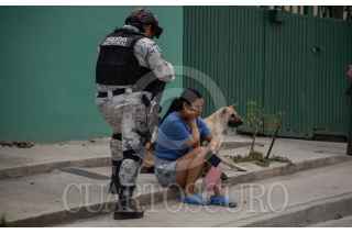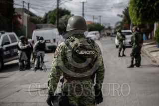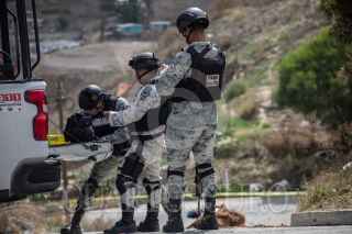 TIJUANA, BAJA CALIFORNIA, 11OCTUBRE2023.- Agentes de la Guardia Nacional en la escena donde se registró un hallazgo. El cuerpo sin vida envuelto en una sabana color café y cartón, atado con un cable, fue encontrado en la colonia Emperadores. De acuerdo a información extraoficial, un taxista que transitaba por la calle Chacatzil cuando observó un bulto sospechoso y notifico a unos agentes de la Guardia Nacional que se encontraban cerca del lugar. Al llegar autoridades dieron positivo al hallazgo, quedando a cargo elementos de la Fiscalia General del Estado y Servicios Periciales, quienes procesaron la escena. FOTO: OMAR MARTÍNEZ/ CUARTOSCURO.COM
