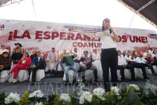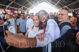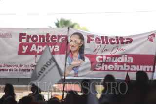 MATAMOROS, COAHUILA, 11OCTUBRE2023.- Claudia Sheinbaum, aspirante a la candidatura presidencial de Morena, se reunió con simpatizantes en el Parque de Beisbol "Horacio Piña", donde se dieron cita alrededor de dos mil personas. La acompañaron el senador Manuel Velasco y Mario delgado, dirigente nacional de Morena. FOTO: ALEJANDRO RODRÍGUEZ/CUARTOSCURO.COM