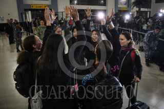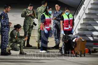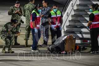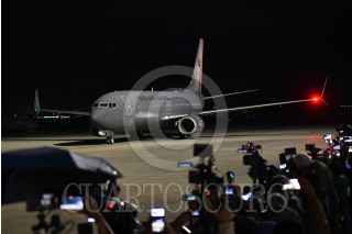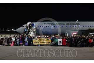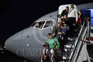 ZUMPANGO, ESTADO DE MÉXICO, 11OCTUBRE2023.- Llegada del avión con matrícula 3528 de la fuerza aérea mexicana con 143 connacionales que se encontraban en territorio israelí durante el conflicto bélico entre Israel y Hamas. FOTO: MARIO JASSO/CUARTOSCURO.COM