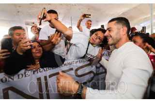 CIUDAD DE MÉXICO, 13OCTUBRE2023.- El licenciado Omar García Harfuch, aspirante a la Coordinación de Defensa de la Transformación en la Ciudad de México sostuvo un encuentro con representantes y líderes sindicales, a quienes reconoció por contribuir con el al cambio social al dignificar las condiciones laborales. Durante el encuentro realizado en la alcaldía Gustavo A. Madero, Omar García Harfuch reconoció el trabajo y la lucha colectiva para dignificar las condiciones laborales, para que sean justas. FOTO: CUARTOSCURO.COM