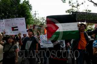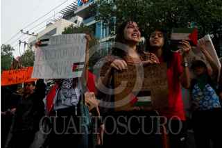 CIUDAD DE MÉXICO, 13OCTUBRE2023.- Asociaciones civiles en apoyo a Palestina se manifestaron frente a la embajada de Israel para posteriormente encaminarse a la oficina de la Organizaciones de las Naciones Unidas (ONU) para exigir un alto a los ataque contra el pueblo palestino por parte de Israel. Asimismo, llamaron a la ONU a aplicar sanciones contra Israel por el constante asedio y ataques militares. FOTO: GALO CAÑAS/CUARTOSCURO.COM