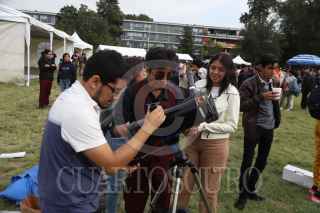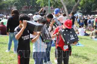 CIUDAD DE MÉXICO, 14OCTUBRE2023.- Capitalinos acuden a las islas de Ciudad Universitaria donde se realizan actividades para la observación del eclipse anular de sol. Fenómeno cósmico en el que la Luna proyecta una sombra sobre el planeta tierra. FOTO: EDGAR NEGRETE LIRA/CUARTOSCURO.COM