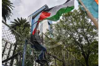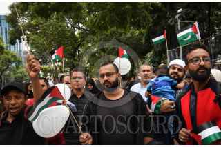 CIUDAD DE MÉXICO, 14OCTUBRE2023.- Asociaciones civiles en apoyo a Palestina se manifestaron frente a la embajada de Estados Unidos para exigir que cesen los ataques contra el pueblo palestino derivado del conflicto armado entre Israel y Hamas. FOTO: MARIO JASSO/CUARTOSCURO.COM