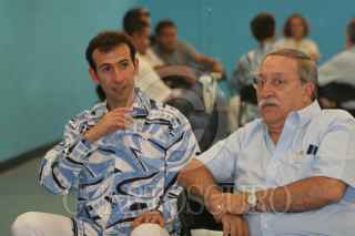 VILLAHERMOSA, TABASCO, 21MAYO2007.- Ricardo Olavarrieta Navarro, técnico de la Union Internacional de Patinaje y Jose Luis Aguilar Urzaiz, Presidente de la Federación Mexicana de Patinaje sobre Hielo y Deportes de Invierno en rueda de prensa llevada a cabo en la Plaza Cinepolis para dar a conocer la nueva tecnologia de calificacion. FOTO: MARCO POLO GUZMÁN HERNÁNDEZ/CUARTOSCURO.COM