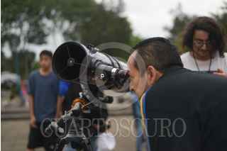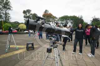 XALAPA, VERACRUZ, 14OCTUBRE2023.- Decenas de personas se congregaron en las instalaciones del Museo de Ciencia y Tecnología Kaná, la mayoría equipados con telescopios para observar el eclipse anular. Sin embargo, la observación del fenómeno astronómico se complicó debido al día nublado. FOTO: YERANIA ROLÓN/CUARTOSCURO.COM