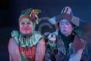 ZACATECAS, ZACATECAS, 15OCTUBRE2023.- El colectivo teatral Pies Hinchados, originario del estado de Jalisco, presentó al publico que se dio cita en la Plazuela Goitia la puesta en escena clown “¡No oigo nada, soy de palo, tengo orejas de pescado!”, como parte del 20vo Festival Internacional de Teatro de Calle Zacatecas 2023. FOTO: ADOLFO VLADIMIR/CUARTOSCURO.COM