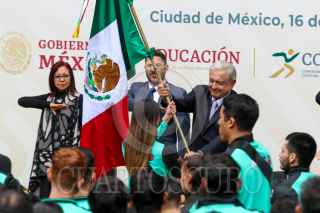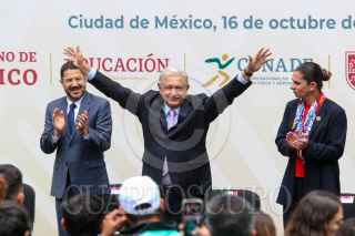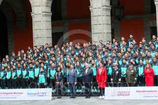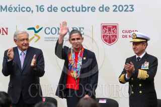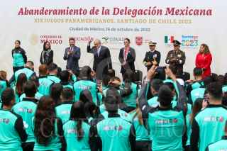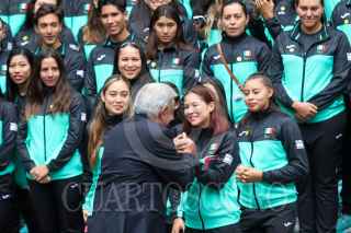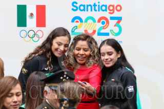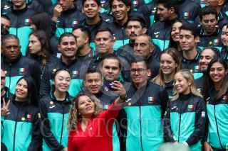 CIUDAD DE MÉXICO, 16OCTUBRE2023.- Mary Jose Alcalá directora del Comité Olímpico Mexicano convive con los deportistas que participarán en los Juegos Panamericanos de Santiago de Chile, en Palacio Nacional. FOTO: MOISÉS PABLO/CUARTOSCURO.COM