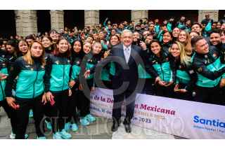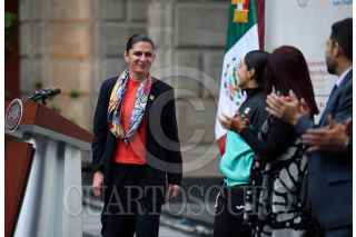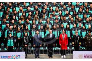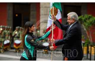 CIUDAD DE MÉXICO, 16OCTUBRE2023.- Mary José Alcalá, presidenta del Comité Olímpico Mexicano, durante la ceremonia de abanderamiento de la delegación que participará en los Juegos Panamericanos de Santiago, en Palacio Nacional. FOTO: PRESIDENCIA/CUARTOSCURO.COM