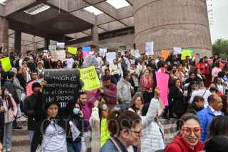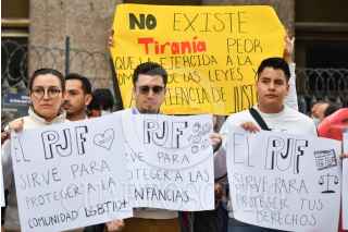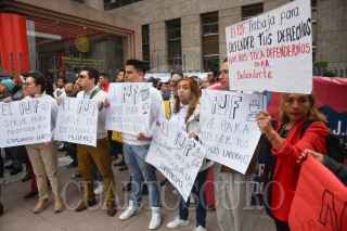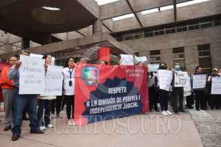 CIUDAD DE MÉXICO, 17OCTUBRE2023.- Integrantes del Sindicato de Trabajadores del PoderJudicial de la Federación (PJF) se manifestaron al exterior del Consejo de la Judicatura Federal Edificio Sede San Lázaro para exigir al Poder Legislativo se respeten sus derechos ante la extinción de trece fideicomisos del PJF. FOTO: MARIO JASSO/CUARTOSCURO.COM