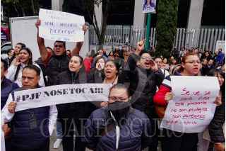 CIUDAD DE MÉXICO, 17OCTUBRE2023.- Integrantes del Sindicato de Trabajadores del Poder Judicial de la Federación (PJF) se manifestaron en diversos puntos de la ciudad esto para exigir al Poder Legislativo se respeten sus derechos ante la extinción de trece fideicomisos del PJF. FOTO: ROGELIO MORALES /CUARTOSCURO.COM