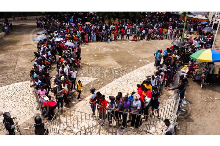 TAPACHULA, CHIAPAS, 17OCTUBRE2023.- Migrantes, en su mayoría haitianos, tiraron las as rejas que resguardaban las oficinas de la Comisión Mexicana de Ayuda Refugiados (COMAR), entre gritos y empujones algunas personas lograron ingresar hasta las puertas de está oficina de migración para exigir un documento que les permita regularizar su estancia en el país para así continuar su camino hacia los Estados Unidos, los pocos elementos de la Guardia Nacional que cuidaban el sitio nada pudieron hacer ante el embate de los migrantes. FOTO: DAMIÁN SÁNCHEZ/CUARTOSCURO.COM