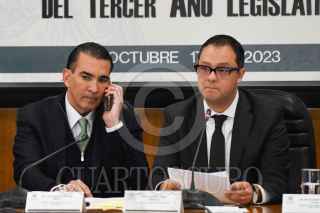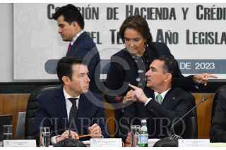 CIUDAD DE MÉXICO,17OCTUBRE2023.- Luis Armando Melgar, presidente de la comisión de Hacienda, y los legisladores Benjamín Robles y Ana Elizabeth Ayala, votan durante la primera reunión ordinaria de la Comisión de Hacienda y Crédito Público del Tercer Año Legislativo. FOTO: MARIO JASSO/CUARTOSCURO.COM