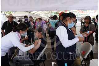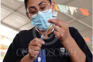 CIUDAD DE MÉXICO, 17OCTUBRE2023.- Personal médico aplicó la vacuna de refuerzo contra la Influenza y Covid-19 a mujeres durante la jornada de vacunación en la explanada de la alcaldía Iztapalapa. FOTO: GRACIELA LÓPEZ /CUARTOSCURO.COM