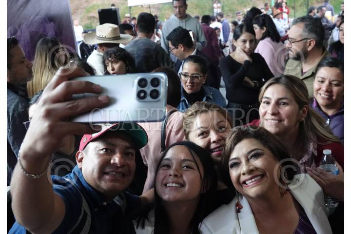 CIUDAD DE MÉXICO, 17OCTUBRE2023.- Clara Brugada, aspirante a la Coordinación de la Transformación en la Ciudad de México, se tomó selfies junto con simpatizantes durante el Encuentro Ciudadano en la alcaldía Magdalena Contreras. FOTO: GRACIELA LÓPEZ /CUARTOSCURO.COM