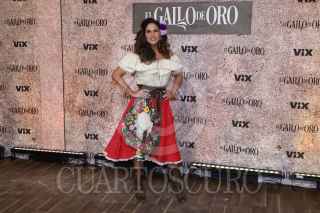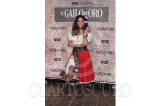 CIUDAD DE MÉXICO, 17OCTUBRE2023.- María Aura durante la alfombra roja por la presentación de la serie de ViX “El Gallo de Oro” en instalaciones del restaurante Arroyo. FOTO: EDGAR NEGRETE LIRA/CUARTOSCURO.COM
