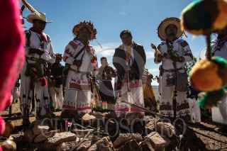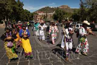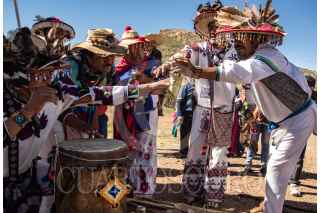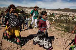 ZACATECAS, ZACATECAS, 18OCTUBRE2023.- Wixaritaris realizaron una peregrinación desde la Plaza de Armas, en el centro histórico hasta Makwipa "lugar donde descansa el venado (Cerro del Padre), considerado un sitio sagrado de la cultura wixárika; ahí realizaron una ceremonia tradicional y limpia colectiva con depósitos de ofrendas. Estas actividades formaron parte del encuentro "Ta+Tukari" 2ª edición "siempre vivos, siempre han existido, nunca morirán", realizado el día de ayer 18 de octubre; con diferentes actividades organizadas por ciudadanos parte del colectivo Guardianes del Cerro del Padre y representantes de los centro ceremoniales del pueblo originario Wixaritári de Jalisco y Nayarit. FOTO: ADOLFO VLADIMIR /CUARTOSCURO.COM