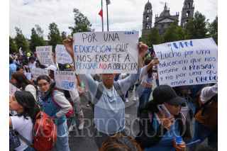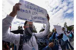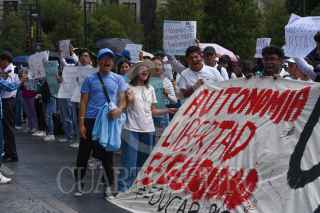 TOLUCA, ESTADO DE MÉXICO, 18OCTUBRE2023.- Estudiantes de la Universidad Pedagógica Nacional (UPN) 151 sede Toluca se manifestaron en Palacio de Gobierno exigiendo mejoras en su universidad, así como mayor seguridad y acceso a un transporte público digno y seguro, entre otras necesidades. FOTO: CRISANTA ESPINOSA AGUILAR /CUARTOSCURO.COM