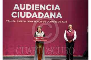 TOLUCA, ESTADO DE MÉXICO, 18OCTUBRE2023.- Delfina Gómez Álvarez Gobernadora del Estado de México encabezó la Primera Audiencia Ciudadana en Palacio de Gobierno en donde conoció de manera directa las necesidades de la población, los secretarios del gobierno mexiquense atendieron a los ciudadanos conforme fueron pasando. FOTO: CRISANTA ESPINOSA AGUILAR /CUARTOSCURO.COM