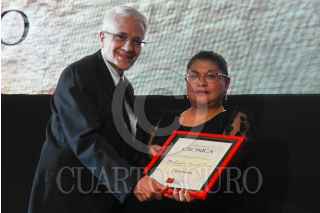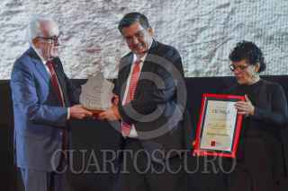 CIUDAD DE MÉXICO, 18OCTUBRE2023.- El doctor Eusebio Juaristi, recibe el premio Crónica 2023 en la categoría Academia, durante ceremonia realizada en el Auditorio “Jaime Torres Bodet” del Museo Nacional de Antropología. FOTO: MARIO JASSO/CUARTOSCURO.COM